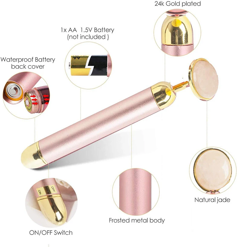 Характеристики продукта: @ характеристики продукта: нефритовый ролик 2 в 1 @ Материал: алюминиевая трубка, цинковый сплав ABS @ частота вибрации: около раз/минута @ Источник питания: -1 батарея из 5 частей (не входит в комплект) @ вес нетто товара/вес брутто: г/г @ Размер: 16 * см @ размер цветной коробки: 19*4 см