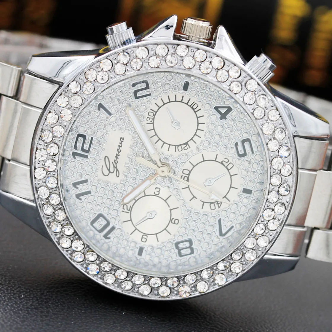 Уникальный дизайн с круглым циферблатом, Очень шикарная мода Регулируемая пряжка крепления Носить часы так себе Прекрасный опыт, как и прямое касание искусства Материал: сплав Вес: 67 г Циферблат: 39 мм Толщина: 10 мм Полоса пропускания: 18 ммСодержимое упаковки: