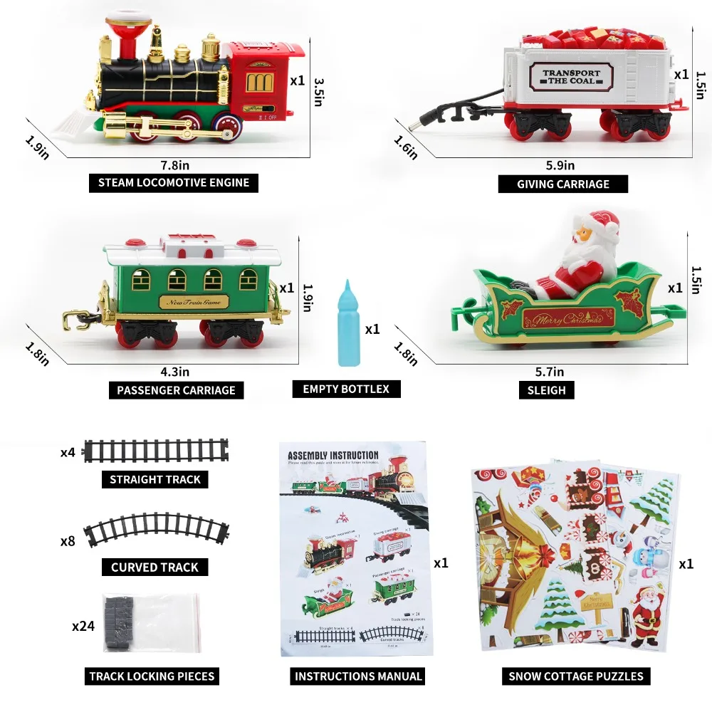 🚂[Чудесный игрушечный поезд для детей] Рождественский набор игрушек-поезд включает в себя классический пар и нежность, коляску, сани Санты, пассажирский автобус, 8 изогнутых дорожек и 4 прямых дорожек. Поезд паровоз двигателя требует 4x1,5 V AA аккумулятор и зарядное устройство не прилагаются. Включите Железнодорожный Набор и приготовьтесь к приятному путешествию. Дети войдут в ретро-атмосферу, чтобы играть с их бесконечным воображением.