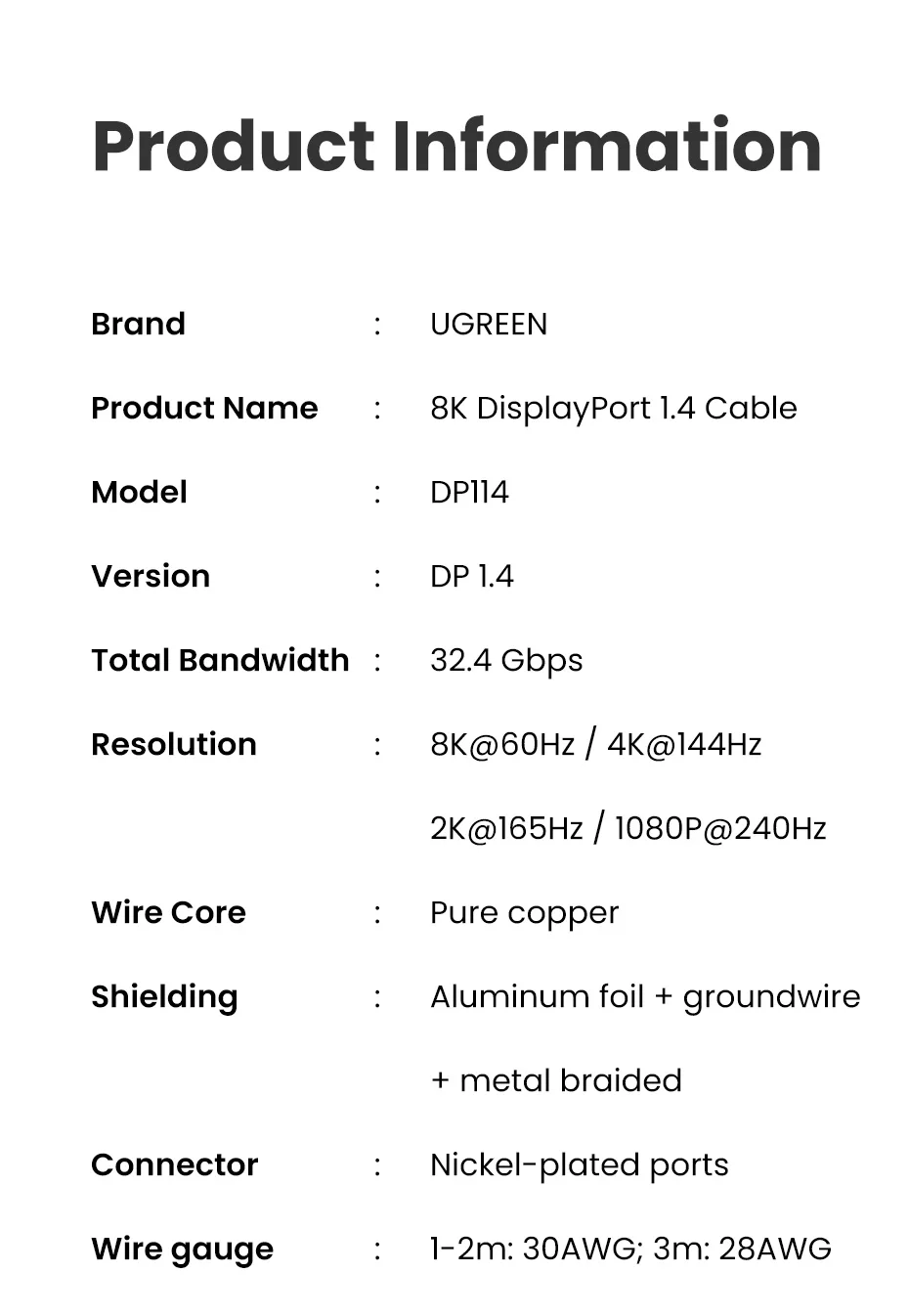 Но окончательная частота обновления продукта также зависит от спецификации вашего устройства. Этот DP кабель поддерживает до 240 Гц, но если ваше устройство поддерживает только 165 Гц, окончательная частота обновления будет 165 Гц.