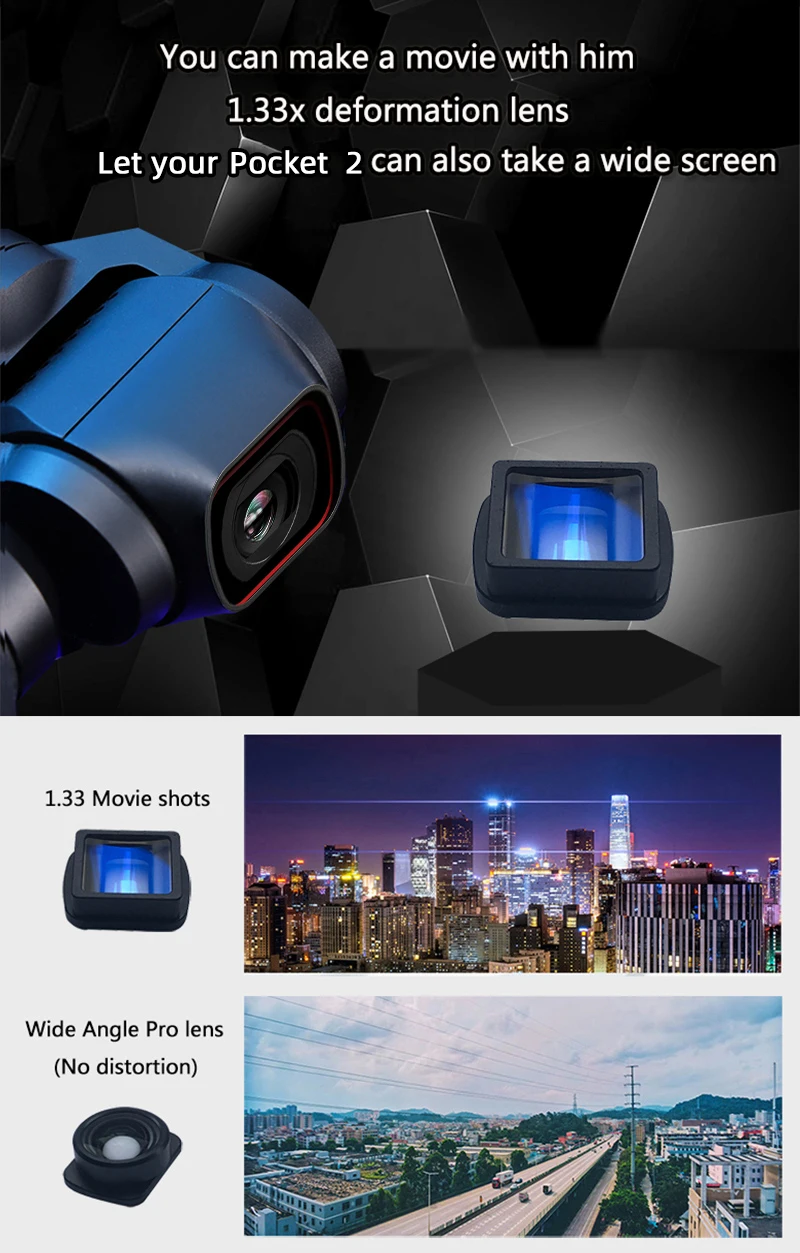 1. 1.33X кинообъектив, более широкое видение, 95% более широкое поле зрения, четкое качество изображения,