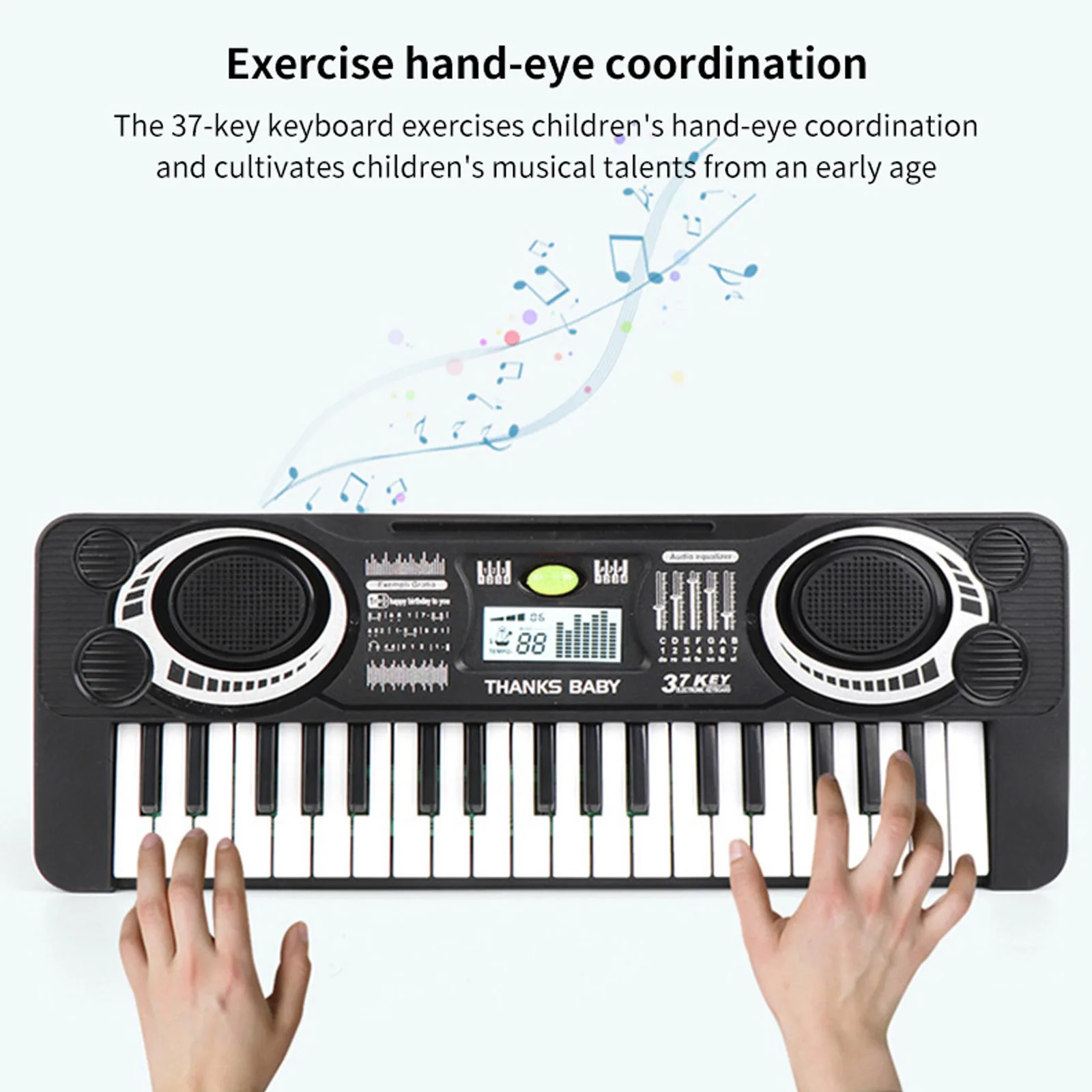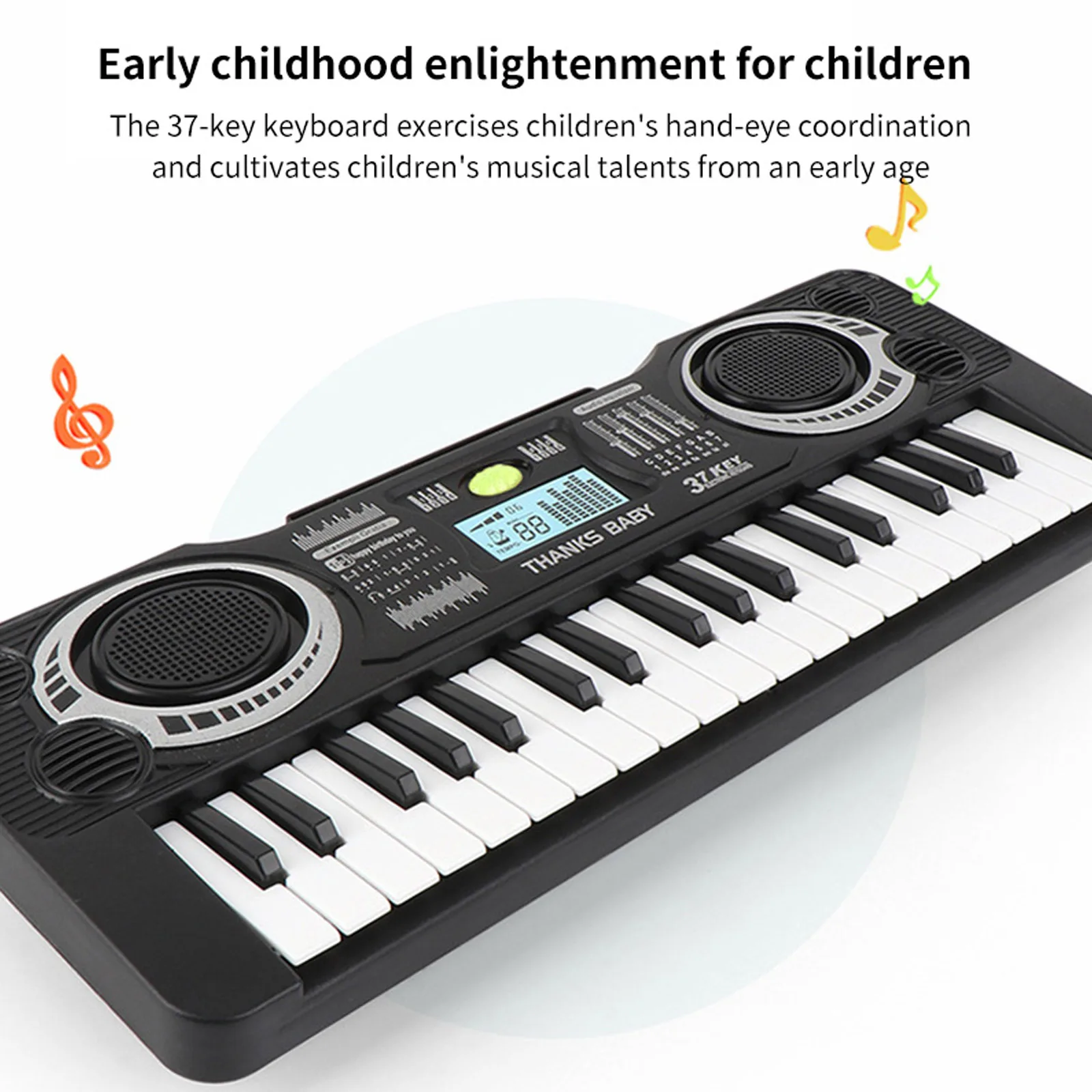 37 клавиши, электронная клавиатура пианино:37 черно-белый дизайн клавиш больше подходит под размер детских пальчиков, и дети могут легко играть. Это электронное пианино с клавиатурой станет хорошей музыкальной игрушкой для просвещения.