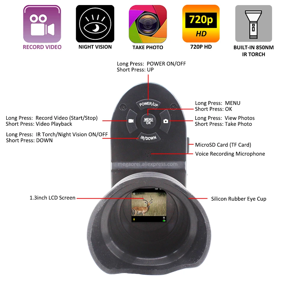 С Megaorei 3 прицел ночного видения 720p видео запись охотничья Оптика прицел видеокамера со встроенным 850нм лазерным ИК-фонариком, вы можете видеть и записывать любой объект в полной темноте. Чтобы вы могли наслаждаться охотой днем и ночью. Вы можете увидеть до 300 ярдов диапазон с ИК-светильник ночного видения. Идеально подходит для широкого спектра использования, таких как наблюдение, Ночная охота, наблюдение за дикой природой и исследования пещер и так далее.