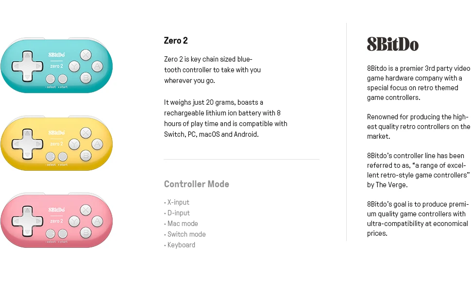 8bitdo Mini Zero 2 Bluetooth геймпад переключатель контроллер совместим для Nintendo Switch Windows Android macOS мини игра Crontroller