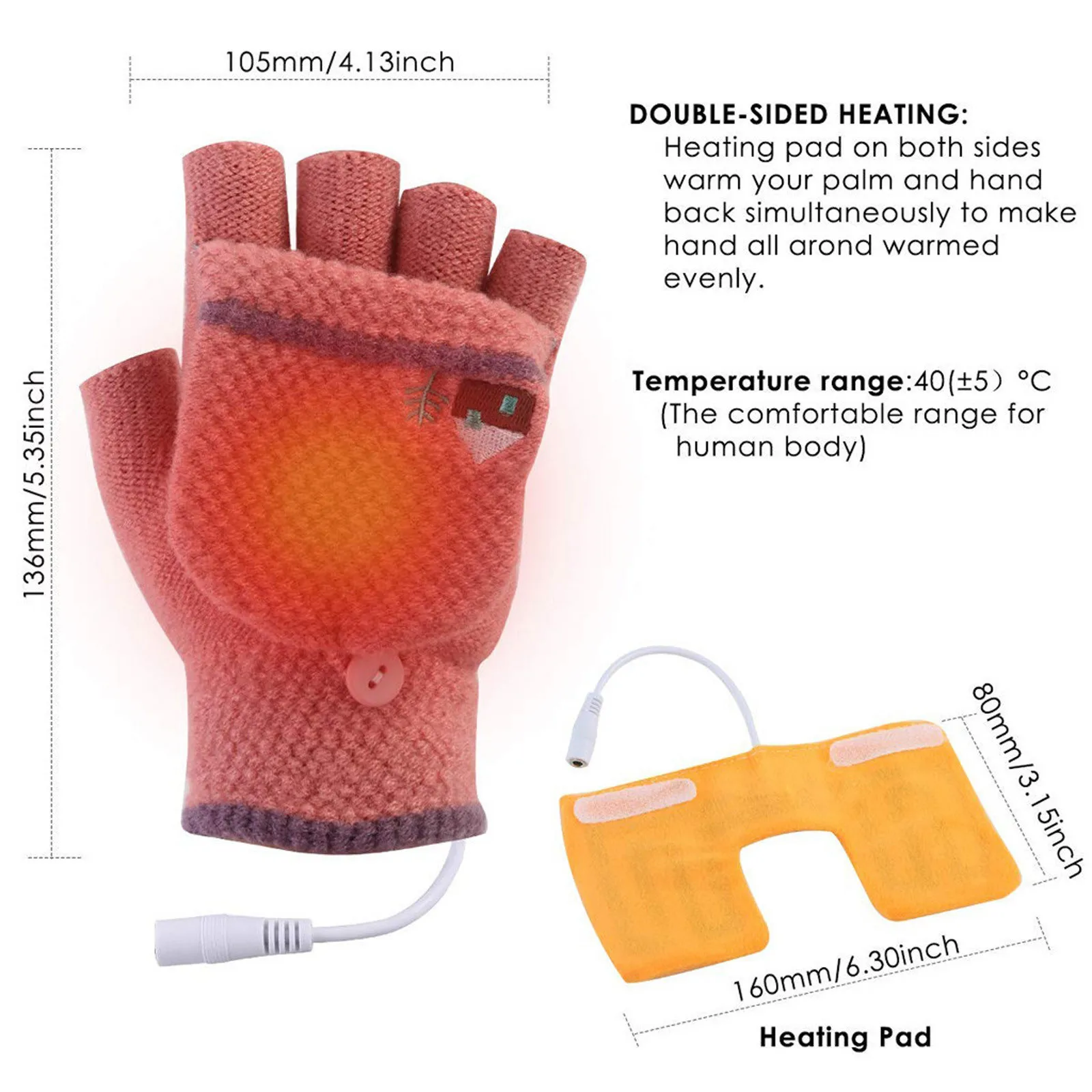 Удобный двухсторонний нагрев-двойной горячий чип, согревает ладонь и Тыльная сторона руки одновременно равномерно нагревает руку и нагревается Температура около 40(± 5)°C, что является наиболее удобным для человека диапазоном Тело, вы не будете чувствовать себя сухим, подверженным перегреву, когда будете носить наш теплый USB перчатки