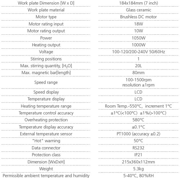 • Максимальная температура нагревательной пластины 550 °C