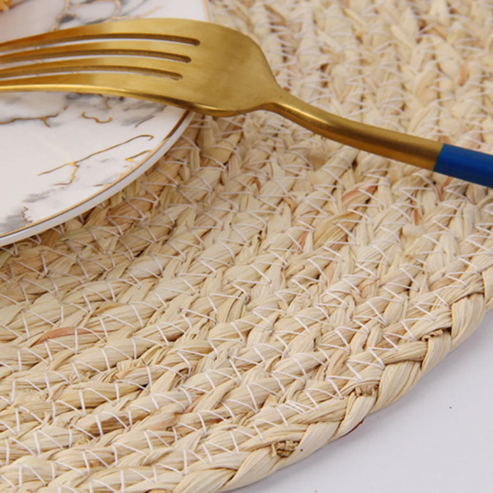 Плетеный джутовый стол ручной работы с водными растениями, нескользящий коврик для обеденного стола из ротанга, изоляционная подставка под чашку, для дома 25