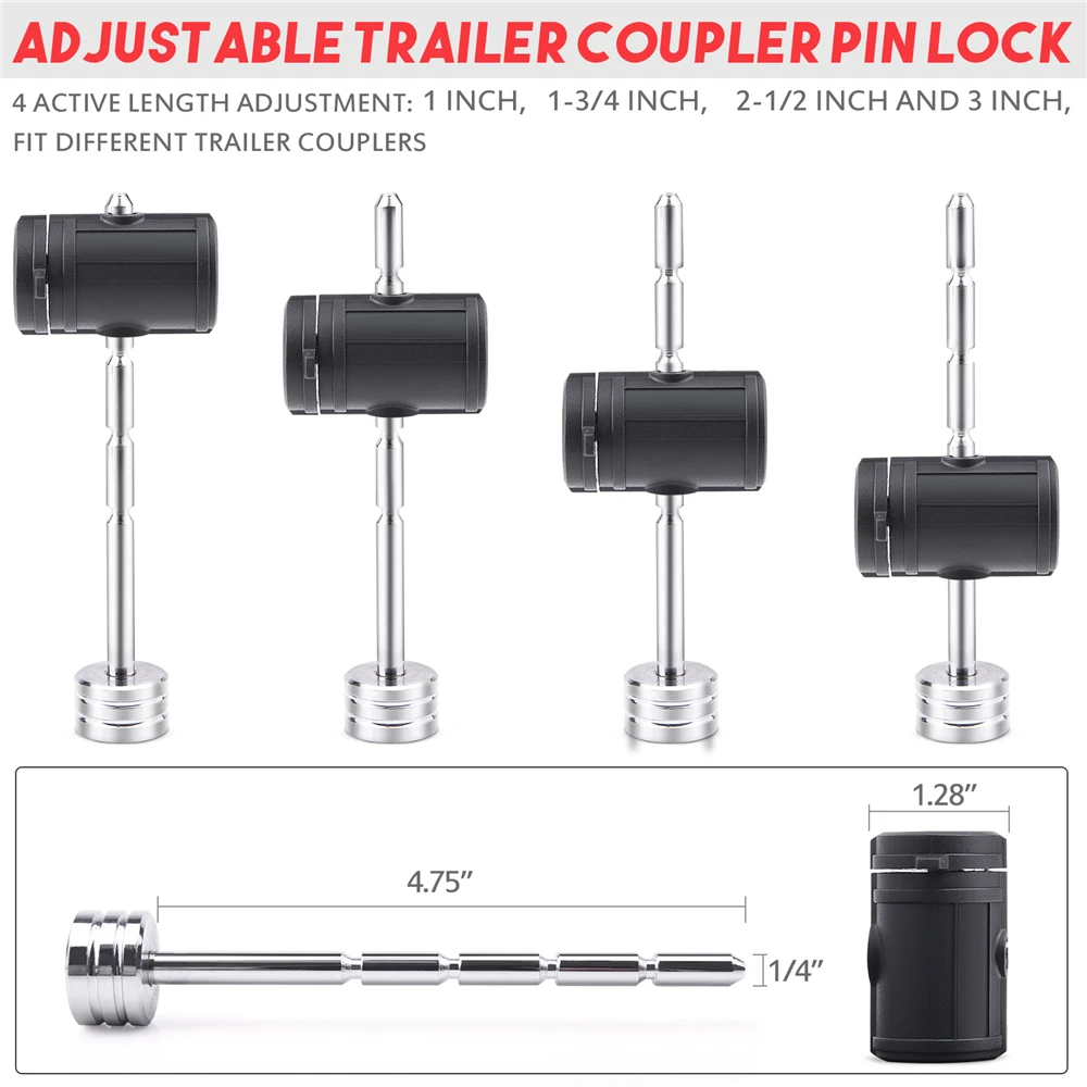 Регулируемый штифт-соединитель для прицепа MICTUNING 2 шт., штифт-соединитель для прицепа с эффективной длиной 3 дюйма, диаметром 1/4 дюйма, регулируется от 1 дюйма до 3 дюймов, подходит для защелкивающегося соединителя для буксировочных лодок, грузовиков, домов на колесах