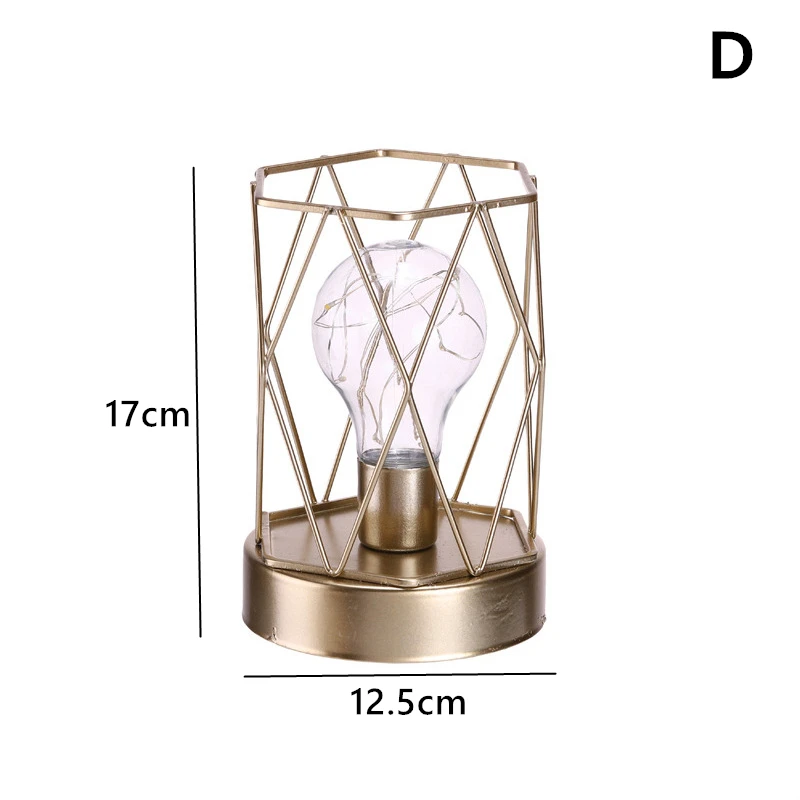Особенности: 1. Изготовлен из прочного, износостойкого и стойкого к ржавчине железа. 2. Геометрический полый дизайн создает художественный и стильное украшение для вашей комнаты. 3. Геометрический дизайн абажура из железа для защиты Встроенная лампа от разрыва. 4. Подходит для спальни, гостиной, столовой, прихожей, отеля, кафе, ресторана и т. д. Характеристики: Тип изделия: настольная лампа Материал: железо Питание: батарейки ААА 3 шт (в комплект не входят) Стиль: нордический Цвет: Золотой Размер (диаметр * В): A: 13*31 см B: 15*22 см C: 12*16 см D: 12,5*17 см E: 12*19 см Посылка входит: 1 шт. * Настольная лампа (включая лампу) Примечания: 1. Замеры сделаны вручную, поэтому возможны отклонения в 2-3%. 2. Реальный цвет изделия может сильно отличаться от изображений на веб-сайте, вызванных многими факторами, такими как яркость вашего монитора и ярсветильник.