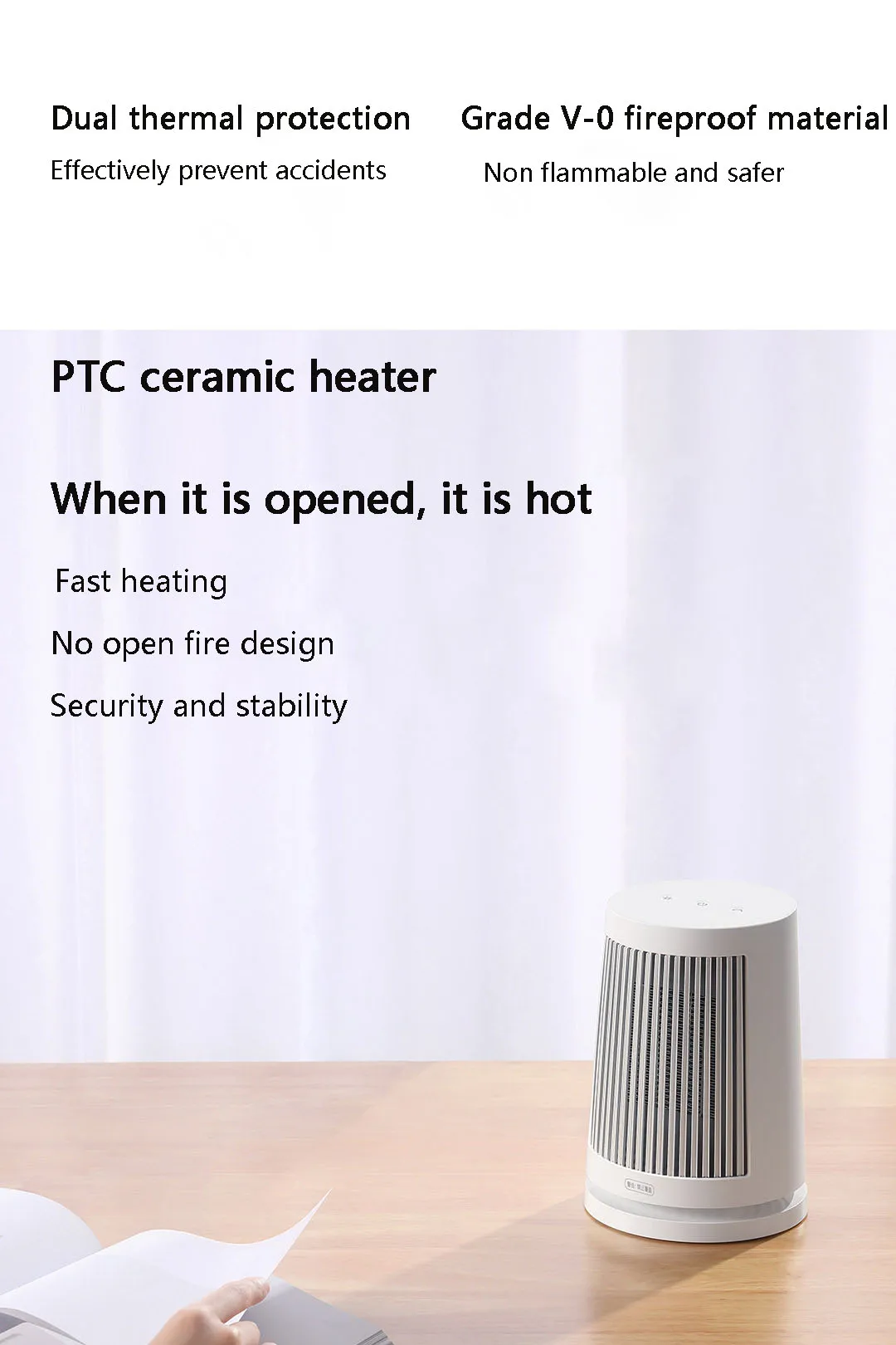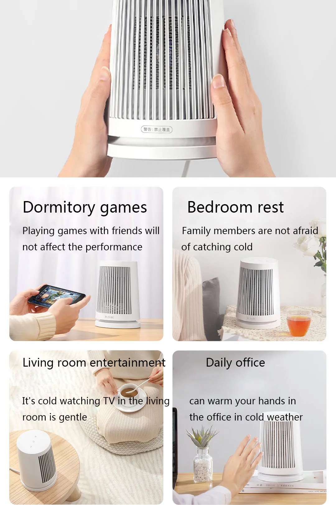 Параметры продукта Название продукта: обогреватель для помещений (обогреватель) Модель продукта: zmnfjo1ym Размер изделия: 132 × 132 × 188 мм Режим нагрева: PTC нагрев Номинальное напряжение: 220 В ~ Номинальная частота: 50 Гц Номинальная мощность: 600 Вт