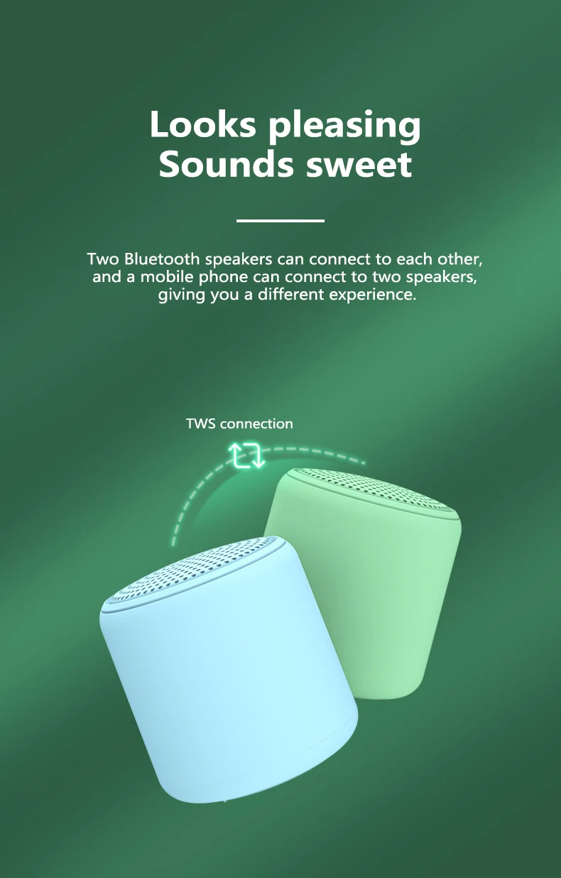 Поддержка режима TWS: возможность сопряжения с другим динамиком и воспроизведения песен с обеих сторон (максимум одно дополнительное сопряжение) двойное нажатие кнопки питания для режима TWS