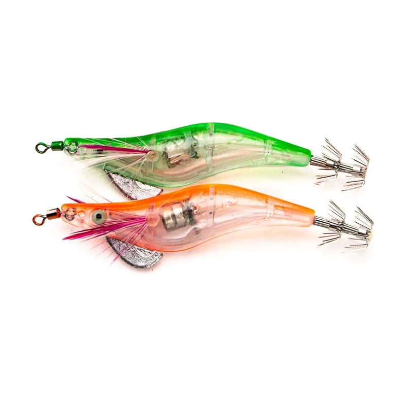 2 шт. мигающие светодиодные рыболовные приманки вспышки светильник 10 см Minnow световой приманок креветки приманки для рыболова для ночной рыбалки приманки, оранжевый и зеленый