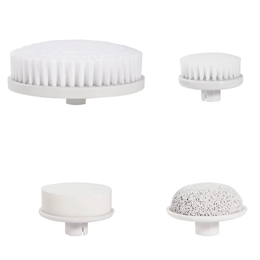 Поставляется с 4 различными головками: Большая кисть, маленькая кисть, пемза и губка для лица.