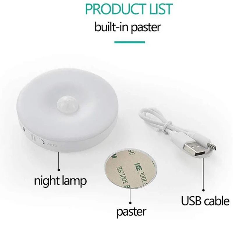 1. Светильник с датчиком движения (батарея в комплекте) + USB-адаптер для зарядки 2.* 3 м двусторонняя клейкая прокладка