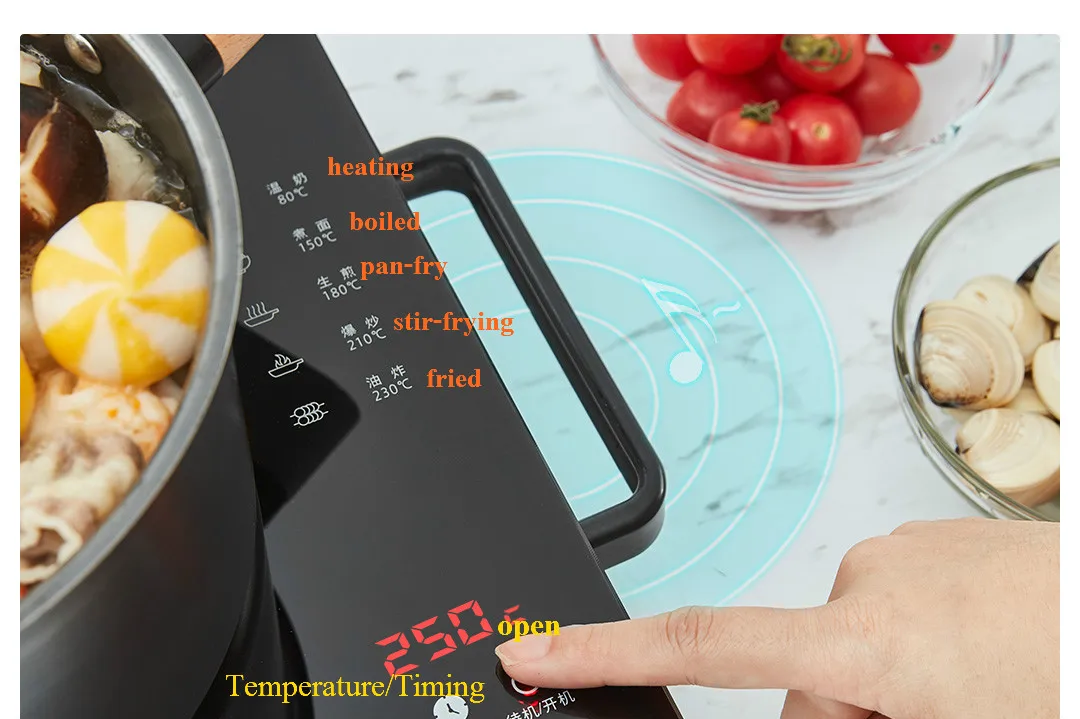Электрическая керамическая плита подходит для различных жаропрочных сковород,Что является гибким и удобным.Стеклянная посуда, металлические противни, глиняные горшки, горшки из сплава, железные горшки, горшки из нержавеющей стали
