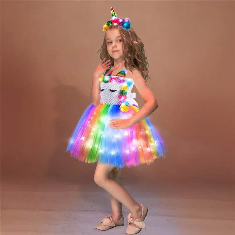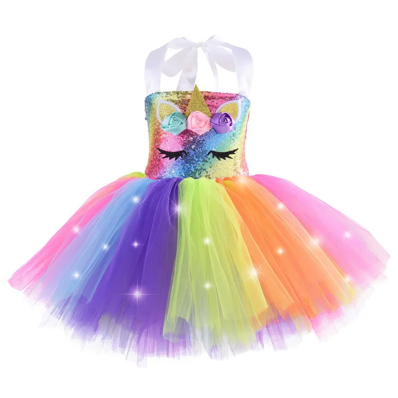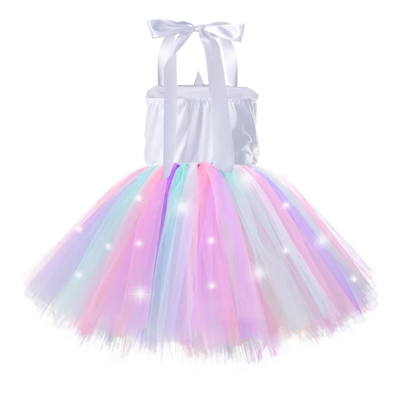 4. Детская одежда ручной работы с юбкой-пачкой в виде единорога: регулируемые лямки с лентой завязывают бант сзади. Спереди украшен прошитыми объемными цветами; Верхняя часть выполнена из хлопка/полиэстера с эластичной вставкой