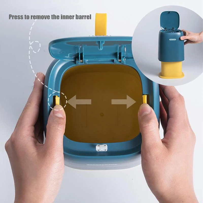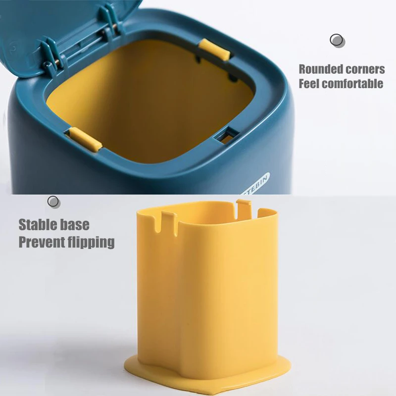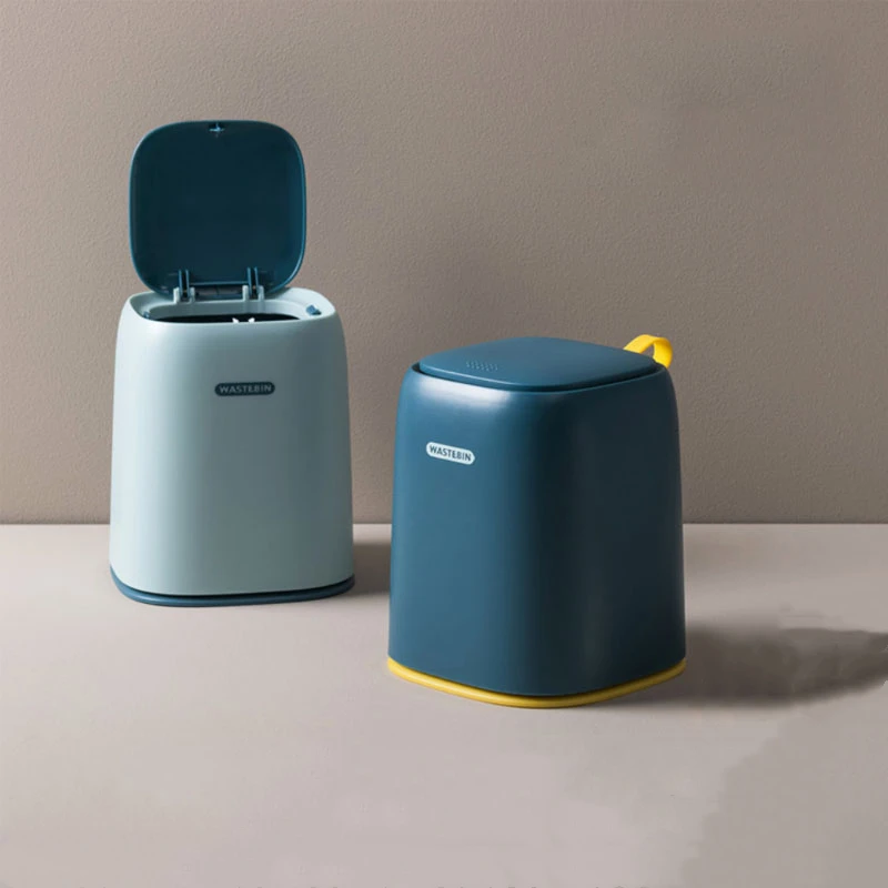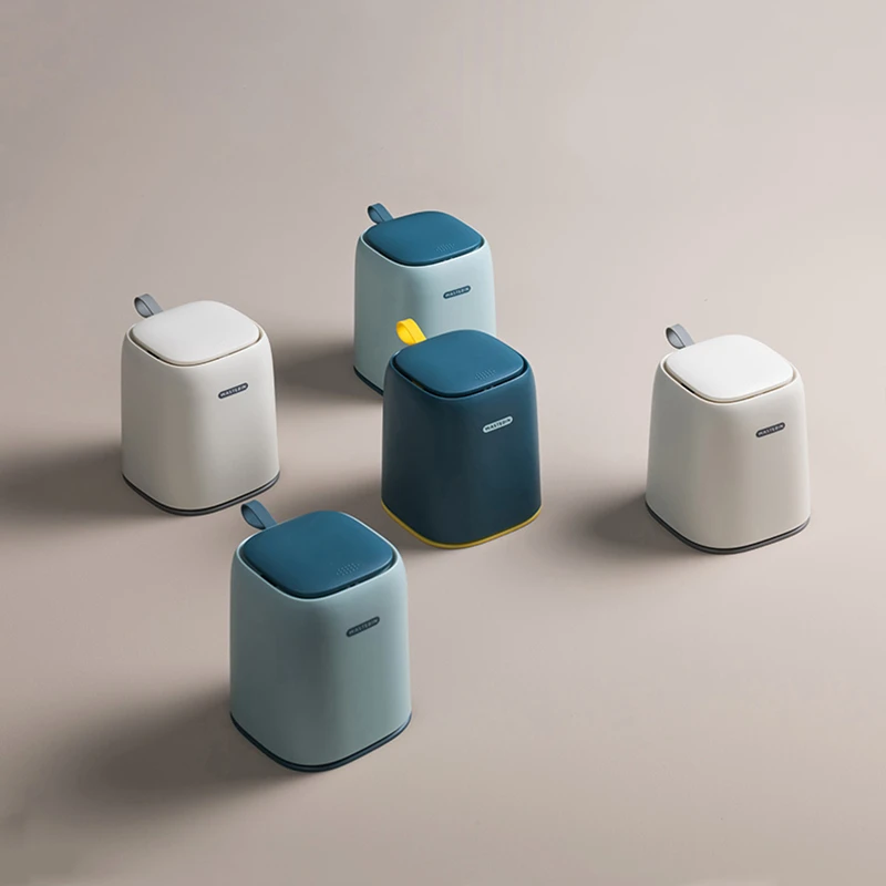 Настольная мусорная корзина Материал: полипропилен Особенности: портативный Размер: 13,8*13,8*16,9 см Цвет: белый/розовый/темно-синий/светло-голубой Сфера применения: гостиная/спальня/кухня/машина