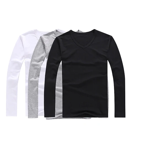 Мужская модная футболка, облегающая хлопковая Повседневная футболка с v-образным вырезом и длинным рукавом, выразительный Топ camiseta masculina