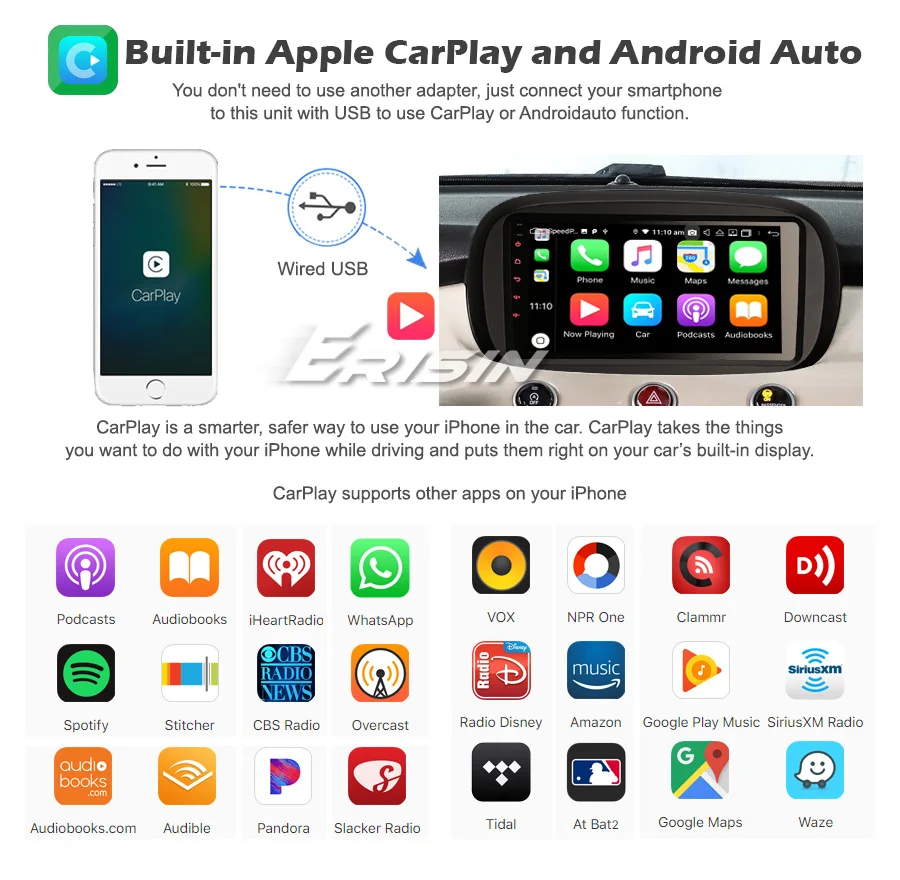 -Встроенный автоматический модуль Apple CarPlay и Android. Вам не нужно использовать другой адаптер, просто подключите