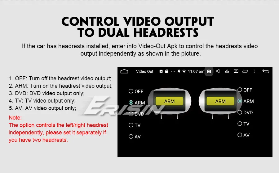 -Встроенный видеовыход APK, может управлять видеовыходом на двойные подголовники самостоятельно.