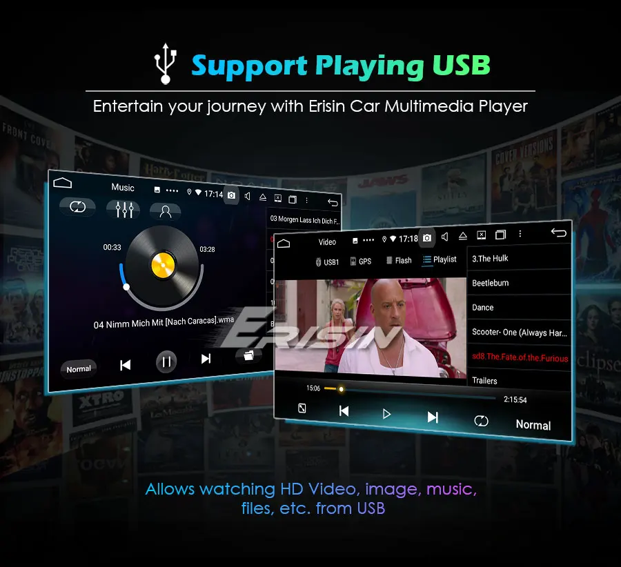 -Встроенный мультимедийный проигрыватель Android, может воспроизводить музыку/видео/фото с локального диска или USB.
