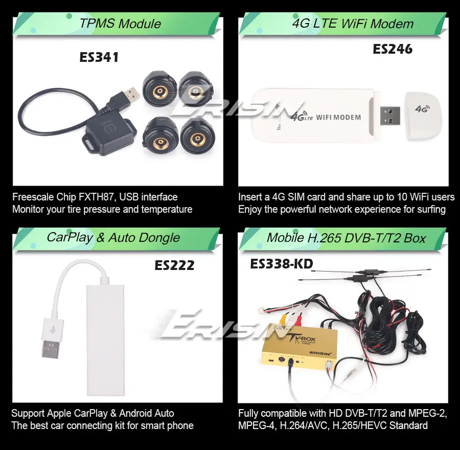 -Поддержка DAB +, DVB-T/T2, TPMS, OBD2, DVR, Camera, AVIN, 3G, 4G и т. д. расширенные функции.