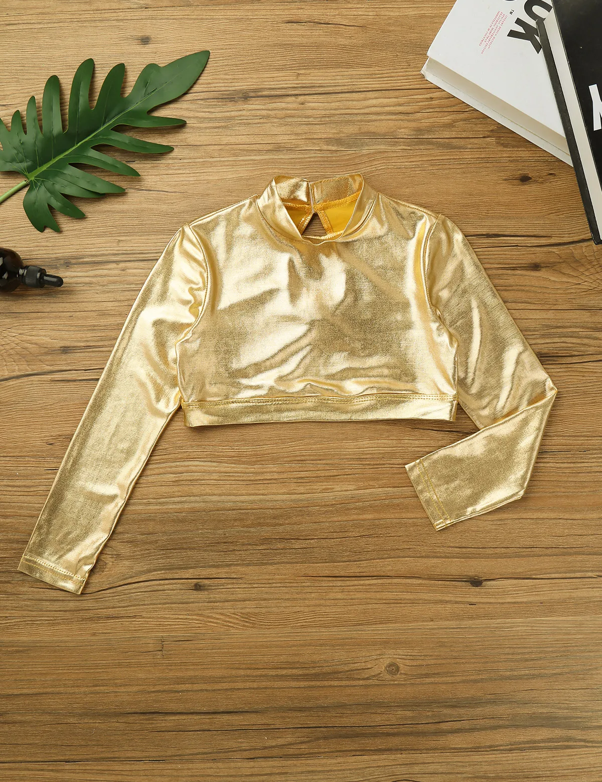 Балетное танцевальное вечерние костюм для маленькой девочки Одежда для танцев комплект глянцевый металлик укороченный топ с Расклешенная юбка в складку одежда для выступлений на сцене, тренировочная одежда,