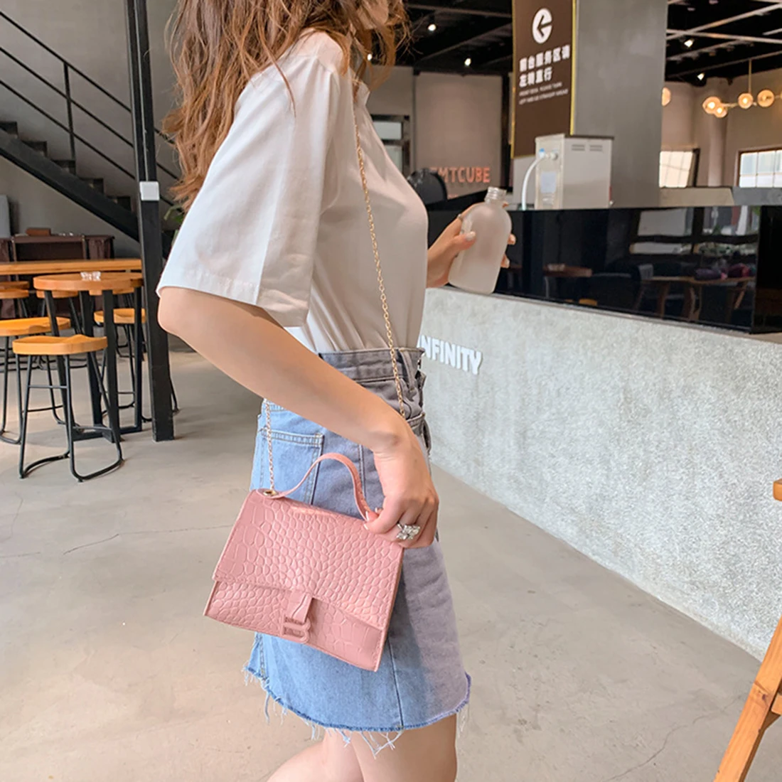 Модная женская однотонная сумка через плечо из искусственной кожи женская акриловая цепочка маленькая квадратная сумка через плечо женская простая сумка