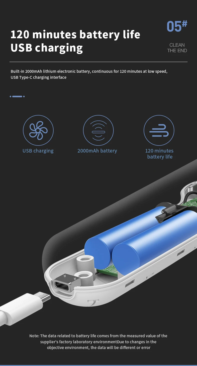 200 мА · ч аккумулятор, обеспечивающий 120 мин высокоскоростной непрерывный долгий срок службы батареи, 2,5 ч Быстрая зарядка