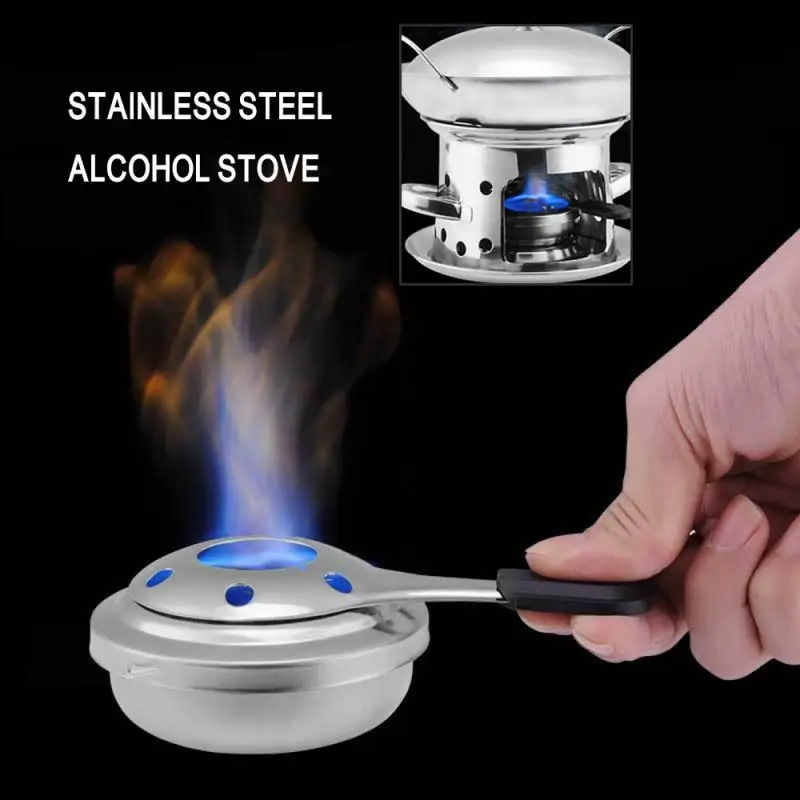 Открытый кемпинг ветрозащитный Мини нержавеющая сталь Ручка спиртовой печи топлива небольшой горячий горшок спиртовой печи