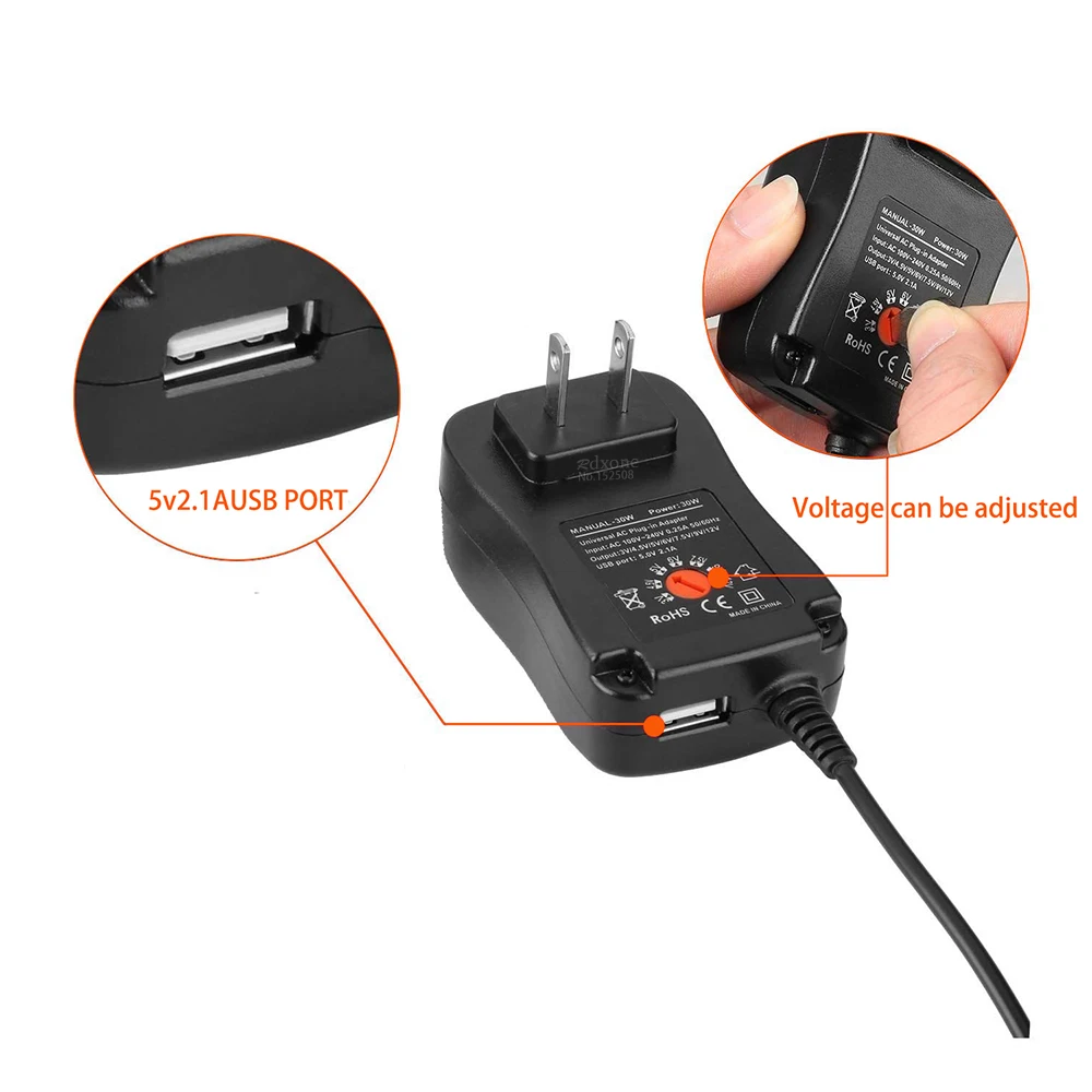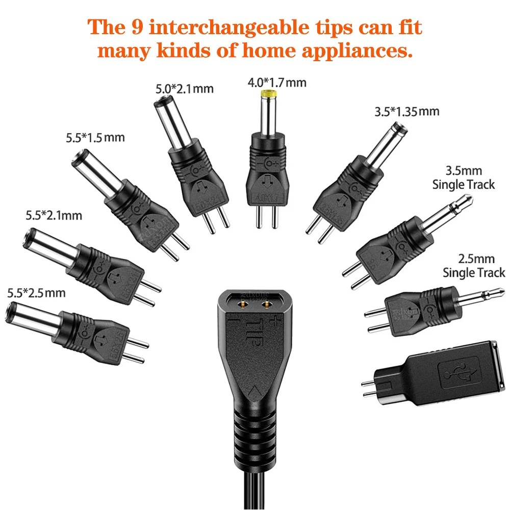 Универсальный адаптер переменного тока 30 Вт, многовольтный источник питания постоянного тока с реверсивной полярностью, с наконечниками 9 шт., совместим с бытовой электроникой от 3 В до 12 В