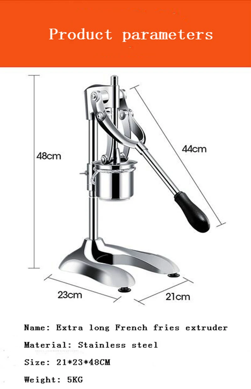 Продукт: длительная машина для производства картофеля фри Модель: STJ Отверстие для экструзии: 12 отверстий Тип: ручной Вместимость: можно приготовить 12 картофельных картофелей фри одновременно Материал: нержавеющая сталь + алюминиевый сплав Приблизительный размер: 210*230*480 мм Вес: 5 кг