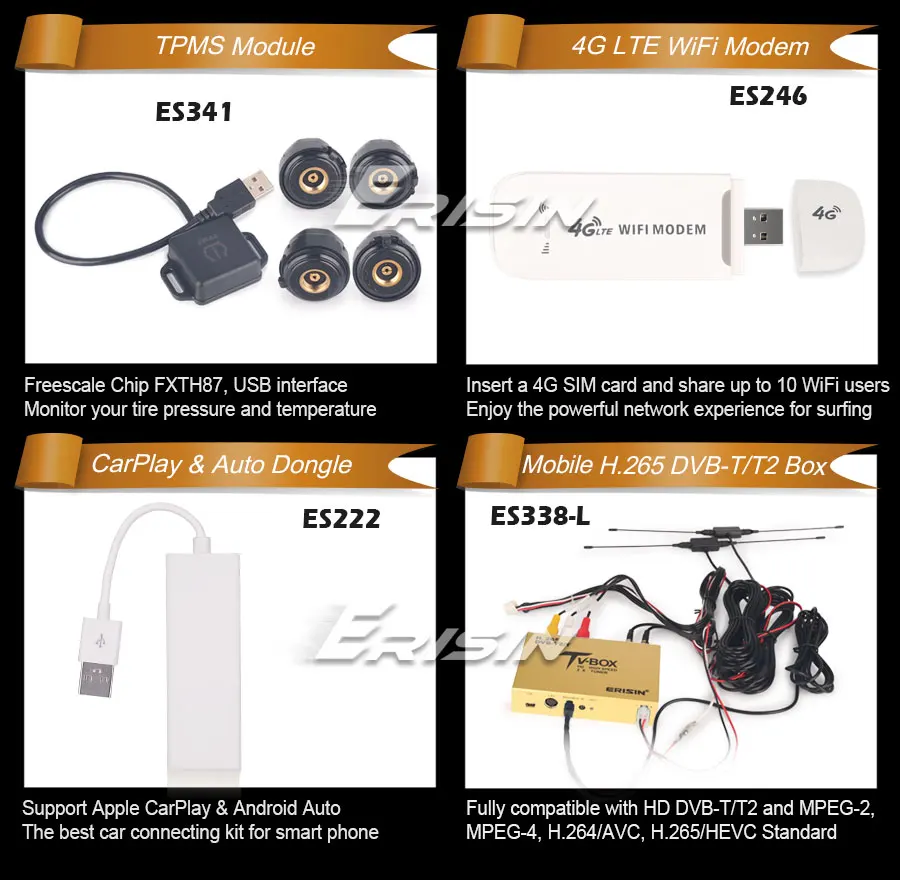 -Поддержка DAB +, DVB-T/T2, TPMS, OBD2, DVR, Camera, AVIN, 3G, 4G и т. д. расширенные функции.