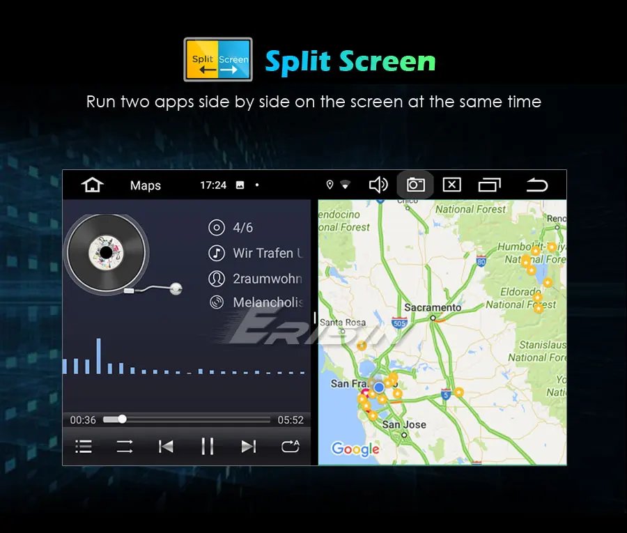 -Встроенный мультимедийный плеер Android, может воспроизводить музыку/видео/фото с локального диска или USB/TF.