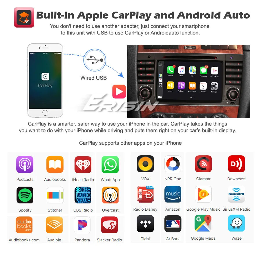 -Встроенный автоматический модуль Apple CarPlay и Android. Вам не нужно использовать другой адаптер, просто подключите