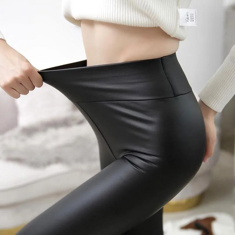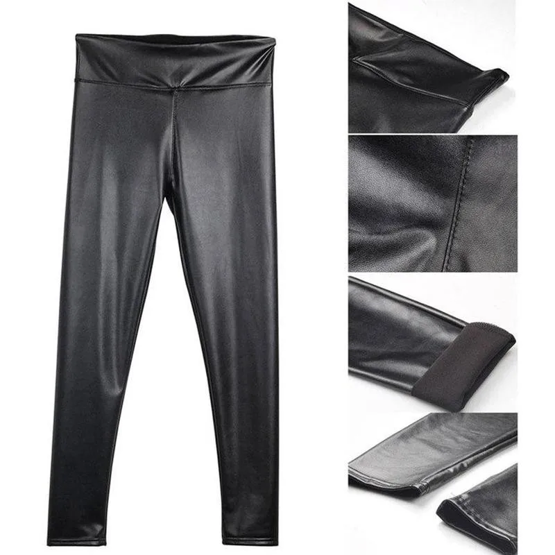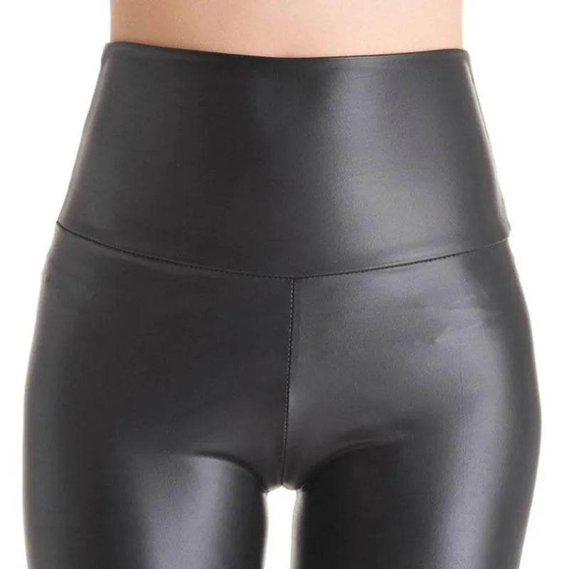 Леггинсы из искусственной кожи с высокой талией, пикантные облегающие брюки с эффектом пуш-ап, черные колготки, брюки-карандаш, модные дизайнерские брюки