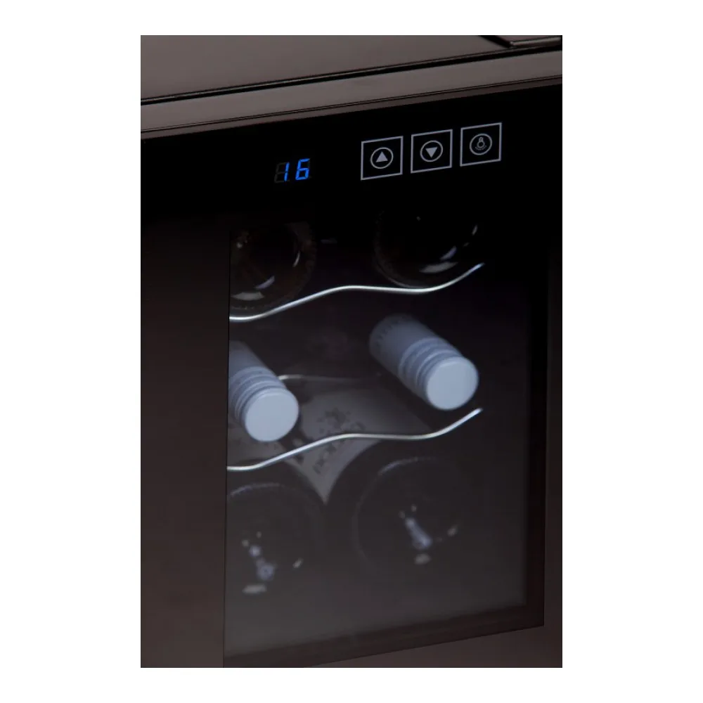 Управление электронное Страна производства Китай Материал покрытия краска Емкость (в бутылках) 6 Защита от детей нет seller_warranty P1Y Общий объем 16 л Класс энергопотребления A+ Количество камер 1 Тип винного шкафа монотемпературный Перевешиваемые двери нет Количество компрессоров 1 штВНЕШНИЙ ВИД ТОВАРА