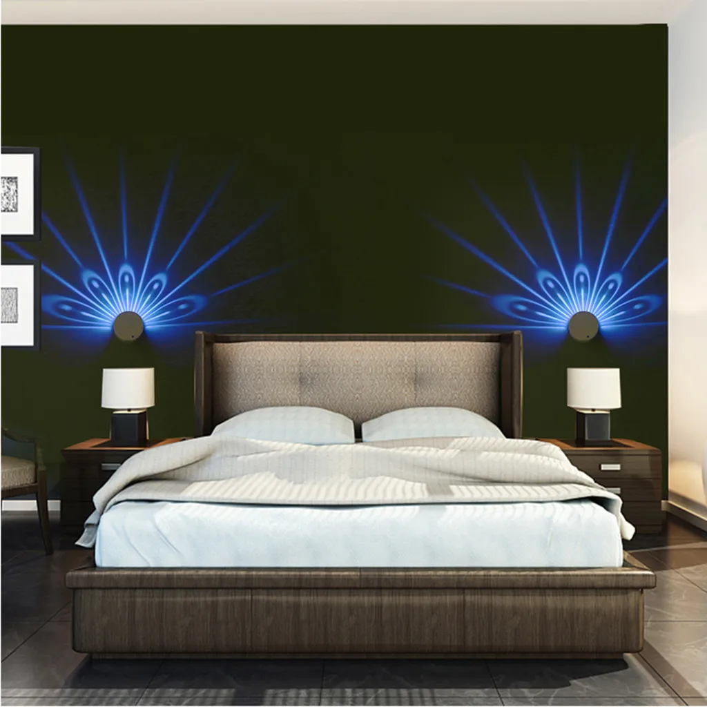 Красочные RGB Павлин настенный светильник с отверстиями по спирали поверхность установить светодиодный светильник