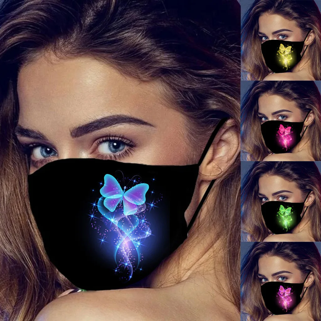 Маска для взрослых Многоразовые Дышащие маски для лица стильная светящаяся маска с принтом бабочки моющаяся Тканевая маска для рта Masker Mascarillas