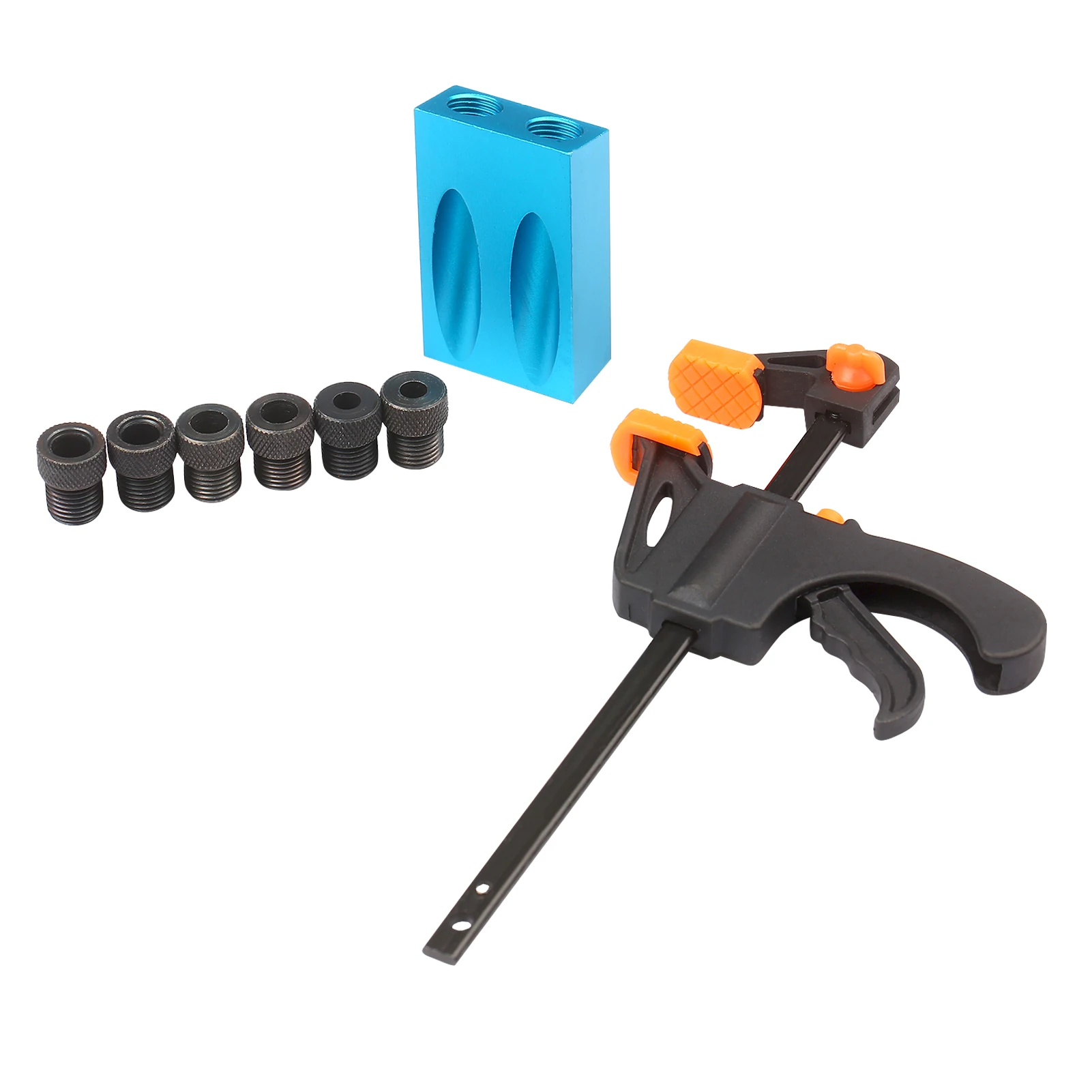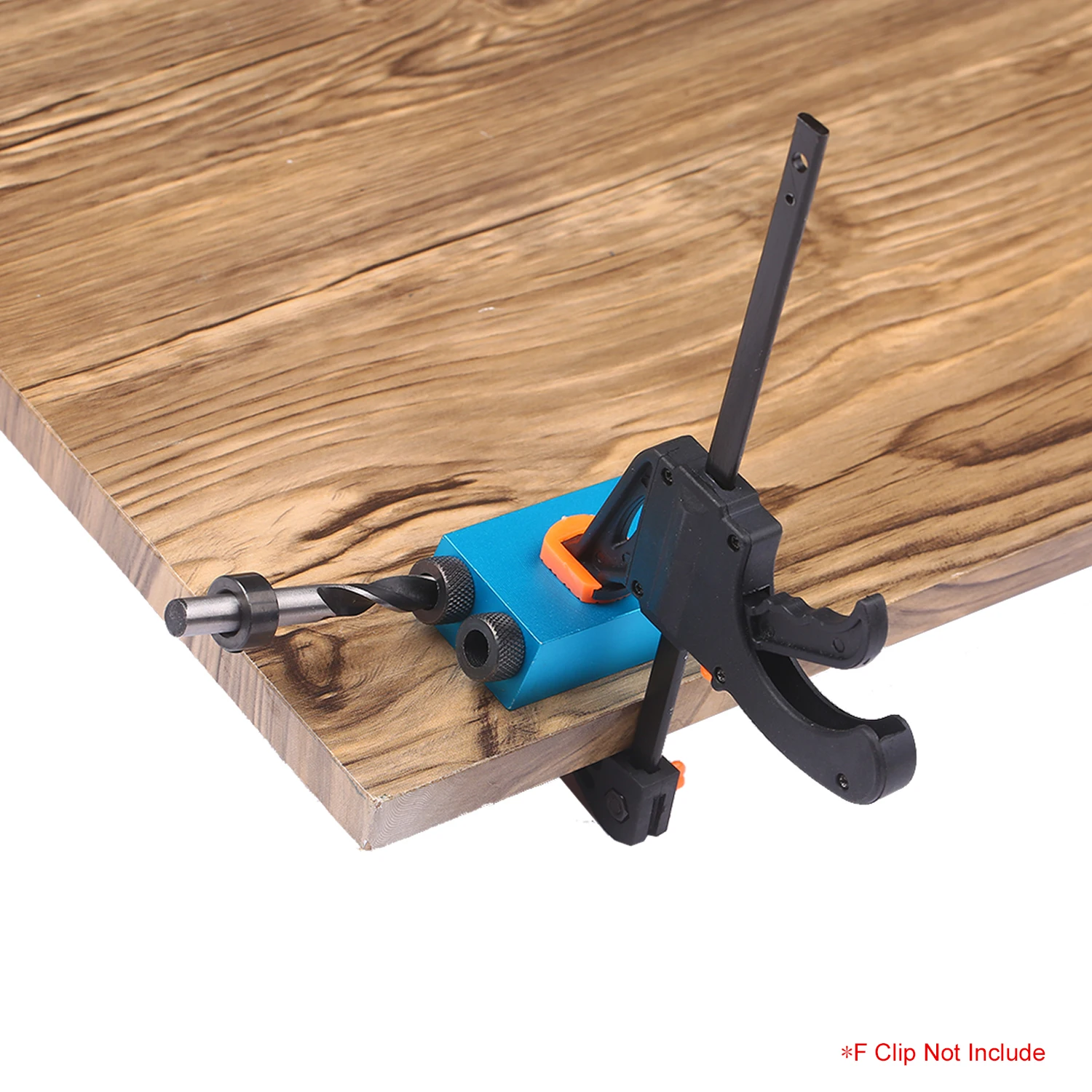Универсальный направитель сверла -- карман отверстие джиг комплект содержит 6/8/10 мм дрель адаптеры, которые могут удовлетворить ваши различных потребностей бурения для того чтобы приспособиться к любой тип древесины, положение и угол. Сверло имеет отличную производительность, стабильную и эффективную работу.