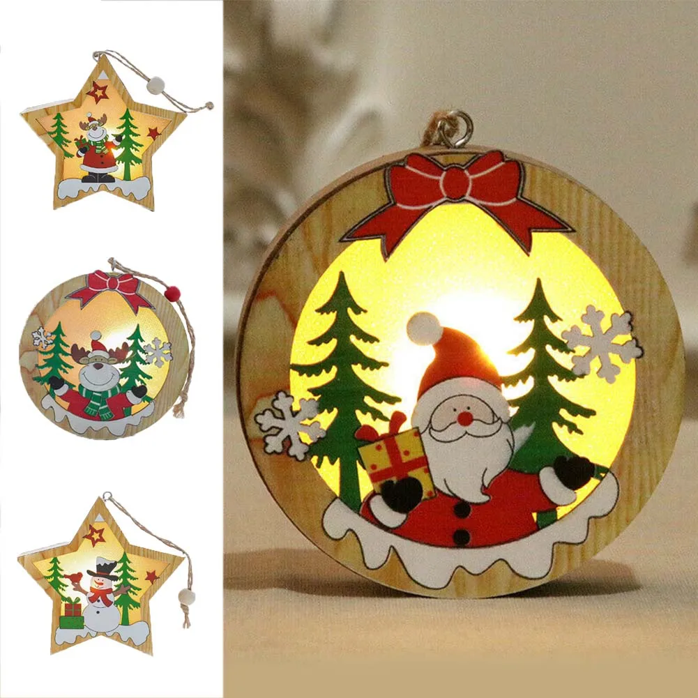Рождественский светодиодный светильник Санта Клаус олень to Cart световой Декор деревянные украшения Лампа Рождественская елка украшения кулон