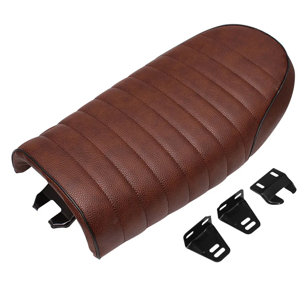 Состояние: абсолютно новое высокопроизводительное сиденье Цвет: черный и коричневый высококачественный кожзам Винтажное мотоциклетное сиденье для кафе Прочный, водонепроницаемый, высококачественный и мягкий кожзам. Стиль горба и черный кожзам Вы получите счастливую и комфортную поездку. Размеры: д 20,9 дюйма * Ш 9,8 дюйма * в 4,7 дюйма (Д 53 см * Ш см * в 12 см) Установка: Это модифицированное сиденье для Cafe Racer, возможно, придется изменить несколько вещей, чтобы оно соответствовало вашему мотоциклу. Пожалуйста, внимательно проверьте размер вашего мотоцикла перед покупкой Подходит для плоской рамы мотоцикла, например: Для HONDA CB CL CG GB GL XL CD Series as CB125 CB175 CB200 CB350 CB360 CB400 CB450 CB500 CB550 CB650 CB750 CG125 Для HONDA CL series as CL100 CL125S CL175 CL200 CL350 CL360 CL450 Для KAWASAKI KZ Z TR W KZ400 KZ550 K750 Z650 W650 S1 H1 Для SUZUKI GT ST GR GS GSX X6 TU Series Для YAMAHA SR125 SR250 SR400 SR500 XJ550 XJ650 XS650 Для B M W R Series R90 R80 R10 Посылка входит Сиденье 1 шт Три съемных монтажных металлических кронштейна и шесть болтов и гаек Фиксирующие винты в комплект не входят.