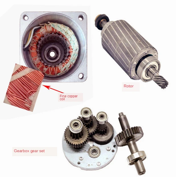 Двигатель: алюминиевый корпус. Катушка из чистой меди и железный сердечник состоят из трех частей (двигатель управления скоростью также имеет катушку управления скоростью).