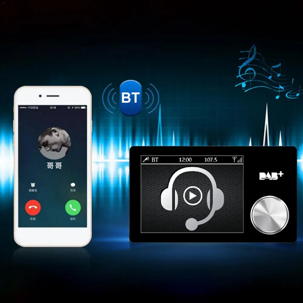 Автомобильный DAB + Европейский цифровой радиоприемник с Bluetooth плеером, видеодисплей в режиме громкой связи, FM-подключаемый простой в использовании plug-and-play DAB +, вы можете слушать цифровое вещание DAB на автомобильной аудиосистеме без установки какой-либо программы