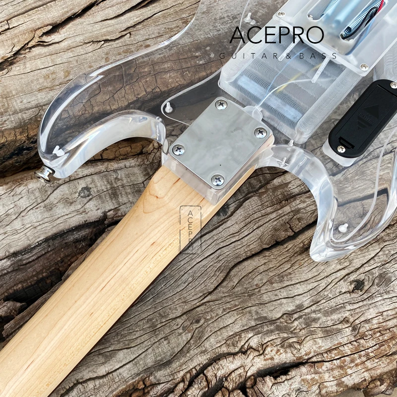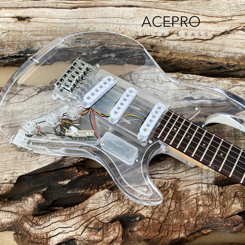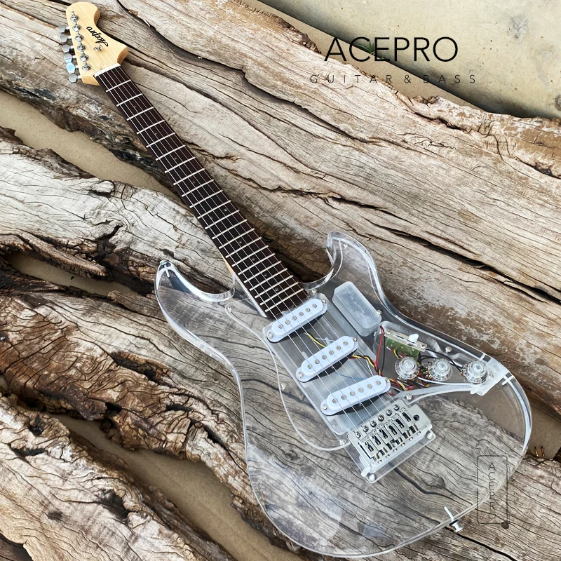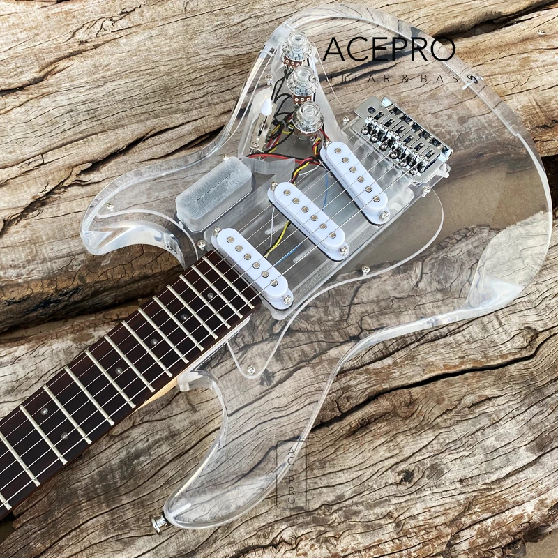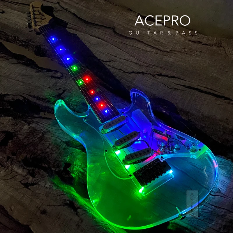 Acepro светодиодный светильник электрогитара с красочным Светодиодный s, акриловая тело гитара с отделкой кристаллами, прозрачный Pickguard & ручки