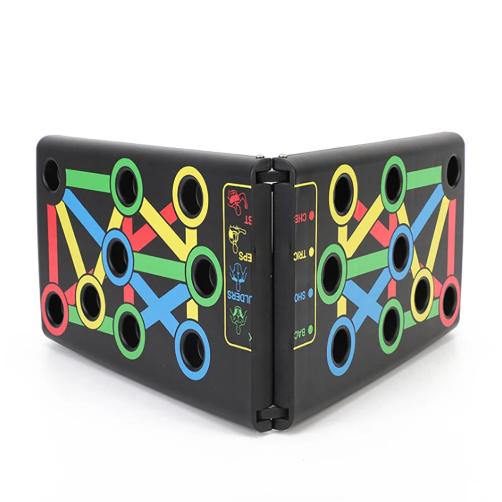 Многофункциональная нажимная стойка Эта плата для стойки пуш-ап представляет собой комплексную систему обучения пуш-ап с цветовой кодировкой. Разные цвета ориентированы на различные части мышц упражнений (синий-грудь, красный-плечи, желтый-спина и зеленый-трицепс)