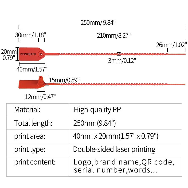250 мм/9,8 "одноразовые пластиковые защитные уплотнения тег персонализированные кабельные стяжки этикетки для одежды логистики Огнетушитель 100 шт