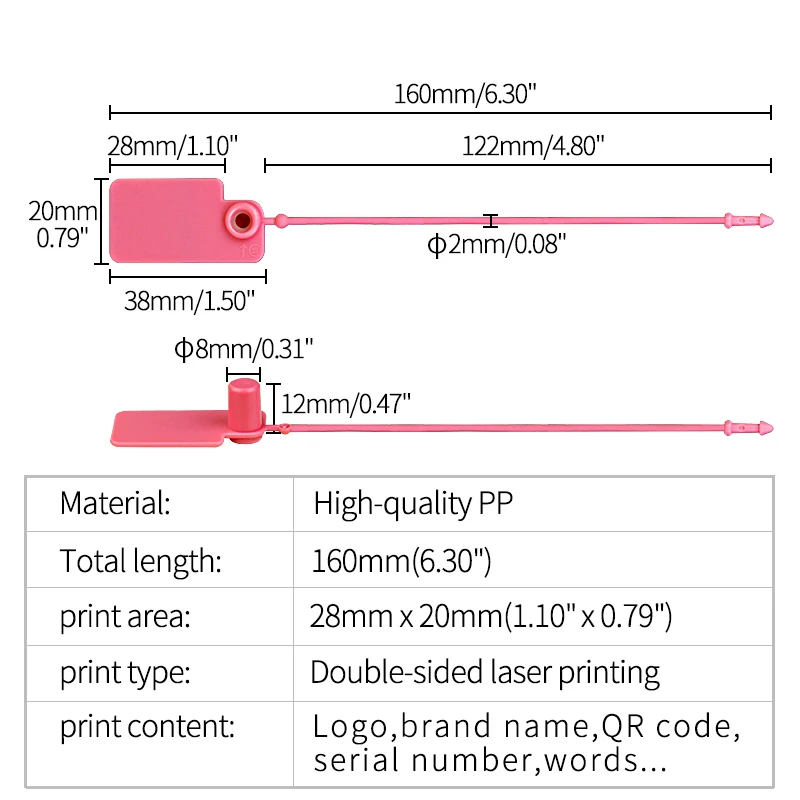 Customizable настраиваемый: вы можете напечатать логотип, номер телефона, фирменное наименование, серийный номер, qr-код, штрих-код, адрес и т. д. ➤Технология печати: передовые технологии лазерной печати, четкие и никогда не выцветают. ➤Широко используется: эти пластиковые бирки могут использоваться как логистические уплотнения, контейнерные уплотнения, бирки для обуви, бирки для сумок, бирки для одежды, огнетушители, бирки для багажа, подарочные бирки, метки садоводческие и так далее. Prevent Предотвращение вредоносных возвратов: связать пластиковые бирки на ваших продуктах, как знак, чтобы сообщить клиентам, продукт может быть возвращен только с тегами завершены. Если бирки сломаны, они не будут доступны для возврата. Например, вы можете напечатать «Нет возврата, если бирка удалена». ➤Не допускайте взлома продуктов: с этими уникальными персональными бирками клиентам легче распознавать ваши продукты от поддельных и останавливать других, чтобы портить ваш дизайн и идеи. Marks полезные отметки: в качестве защитных отметок эти метки также могут запечатывать контейнеры или двери и предотвращать их открытие без разрешения.