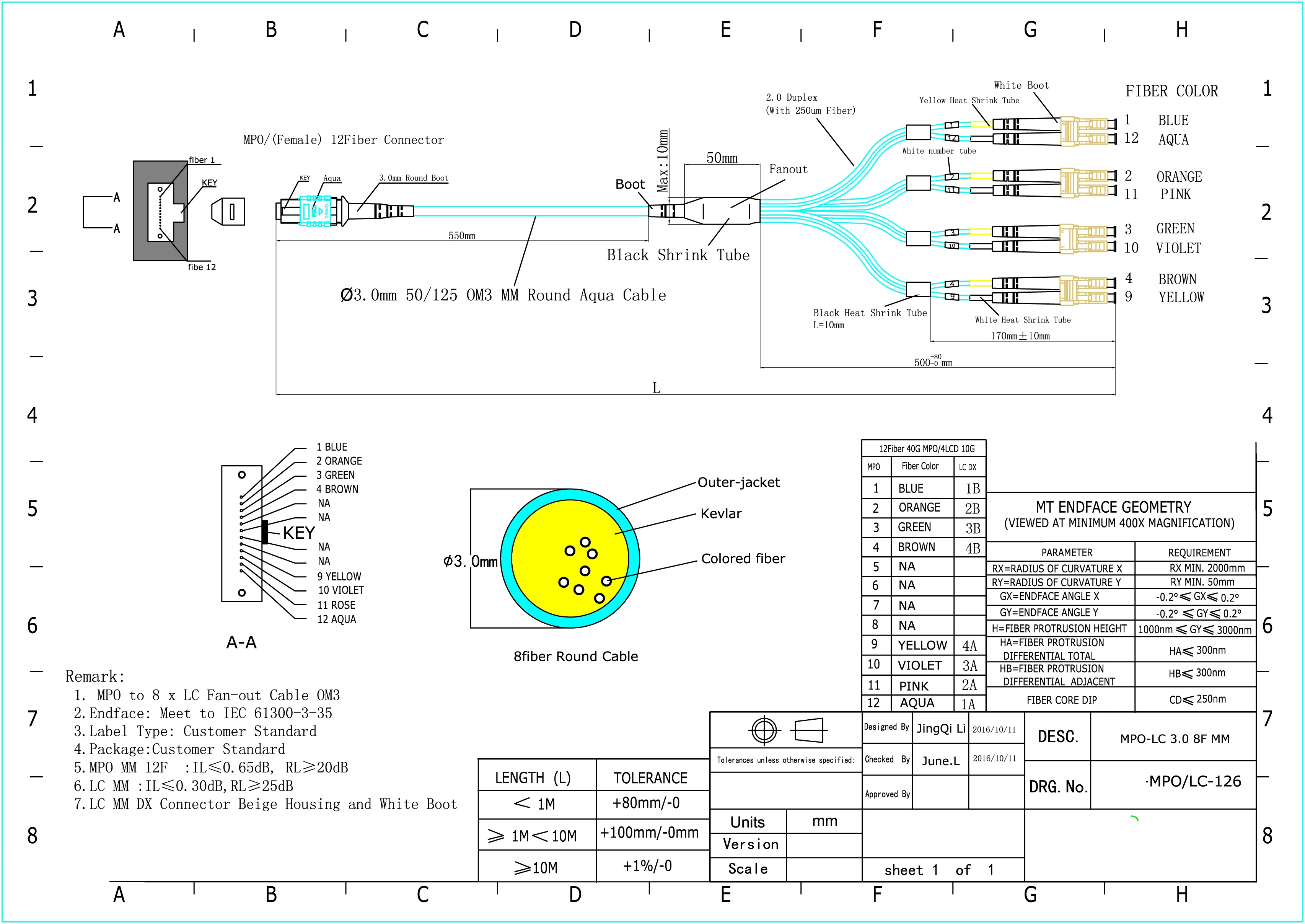 Например:MM,MPO Male-12xLCUPC 2,0mm Fanout волоконно-оптический патч-корд, 3,0mm 12C OM4 Mini PINK LSZH круглый кабель, L:3M (2M + 1M),Standand Loss