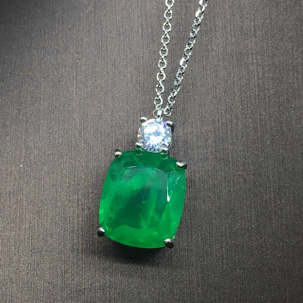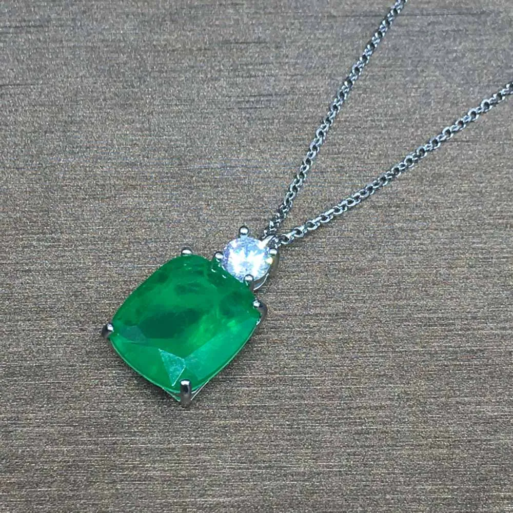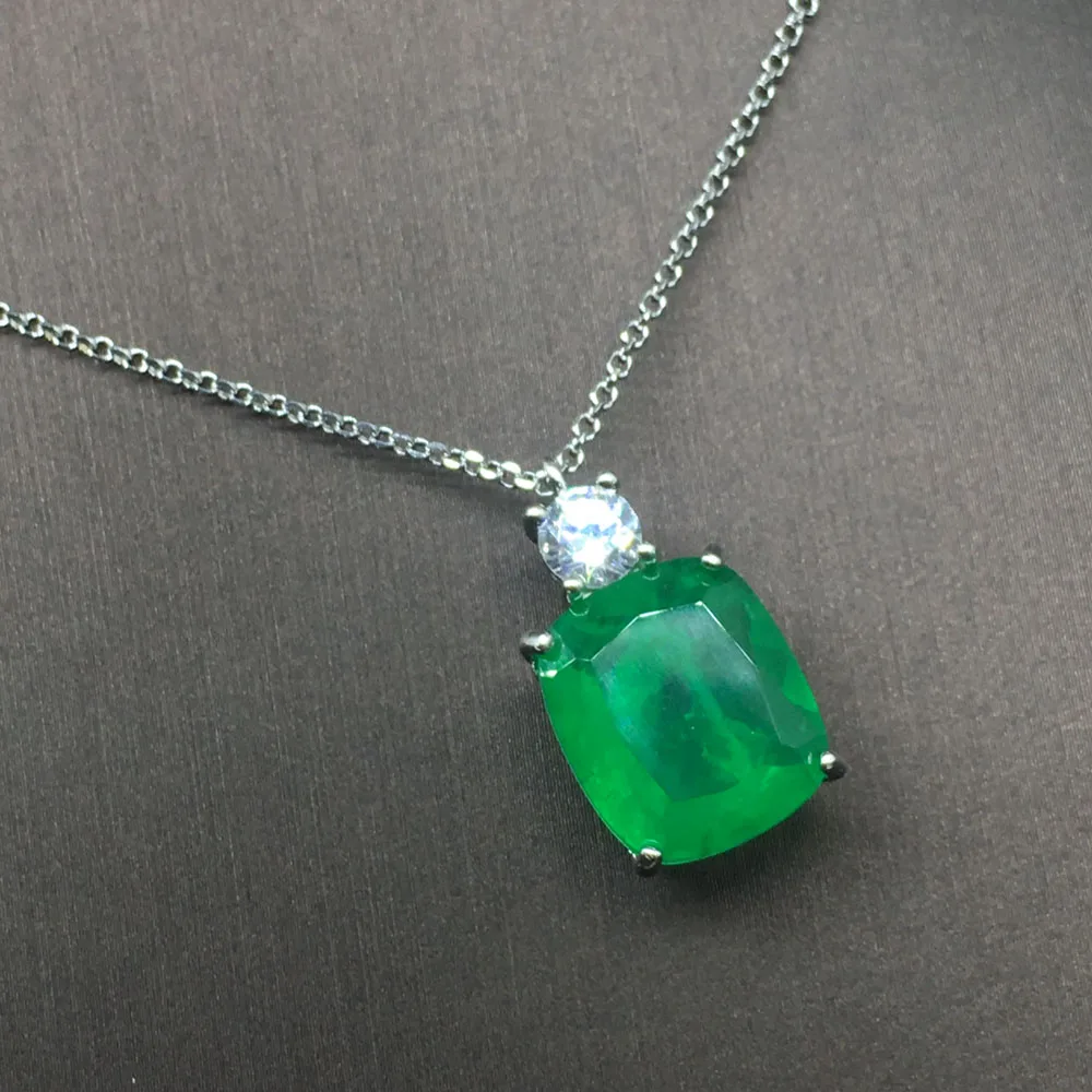 CSJ созданная изумрудная Подвеска из стерлингового серебра 925 пробы с подушками 12*14 мм, хорошее ювелирное изделие, ожерелье для женщин, подарок на свадьбу Чиан прилагается